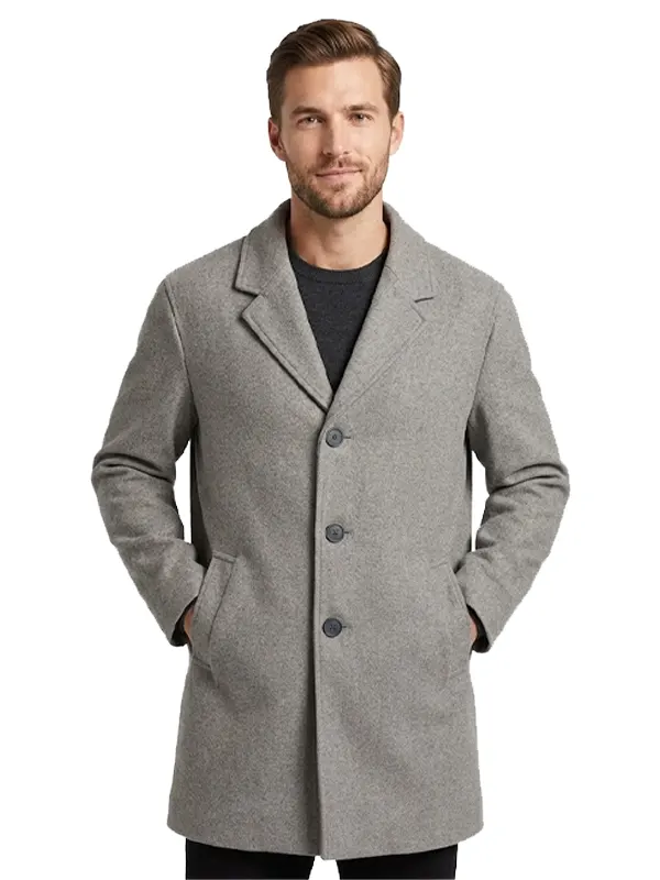 Stylish Men’s Grey Wool Blend Heavyweight Overcoat