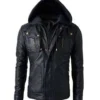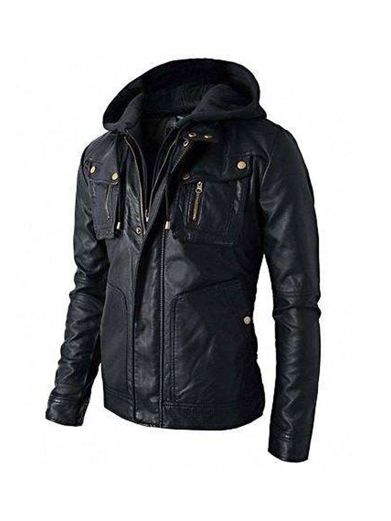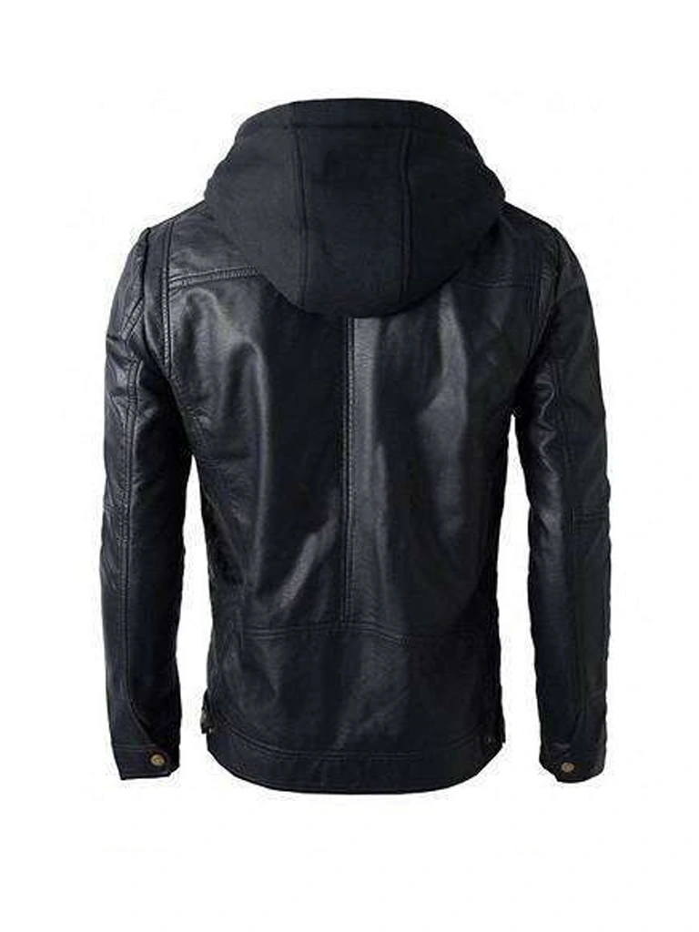 Be the first to review “Mens Hooded Black Biker Leather Jacket”