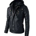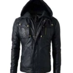 Presenting Mens Hooded Black Leather Jacket. We will gladly announce this jacket in a couple of days. Made from sheepskin leather, the lining is crafted from polyester. Plus, it has a detachable hoodie and is ideal for both genders. Moreover, it has a front zipper closure with long sleeves.