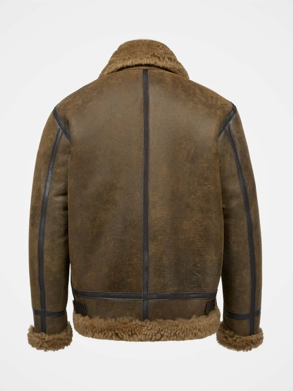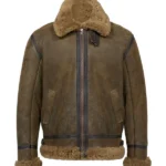 Men’s Shearling Khaki Brown Classic Genuine Leather Aviator Jacket
