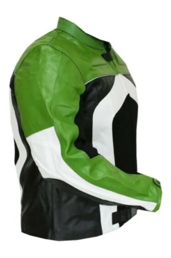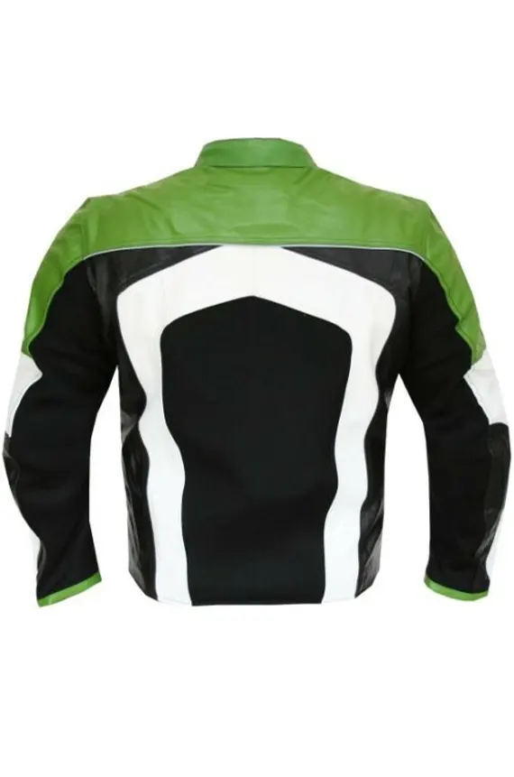 Men’s Razer Motorcycle Biker Mesh Green Leather Riding Jacket