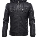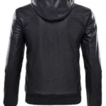 Men’s Bomber Removable Black Hood Leather Jacket