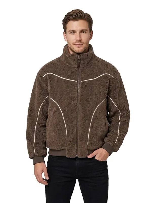 The Men’s Sherpa Oversized Brown Jacket is created using the Sherpa Fabric, Soft Viscose Lining, Full Length Sleeves, Ribbed Cuffs, Stand Up Collar, Zipper Closure, Two Outside Pocket, Two Inside Pocket, Brown Color, making it suitable for winter outings, travel, and everyday wear with a relaxed and fashionable design.
