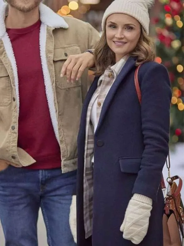 Rachael Leigh Cook portrays Merry Griffin in Tis the Season to Be Merry, a charming holiday romance. This blue wool coat features soft viscose lining, full sleeves, button closure, and practical pockets for cozy elegance while naturally recalling the Adam Walters Black Puffer Jacket as another festive style favorite choice.