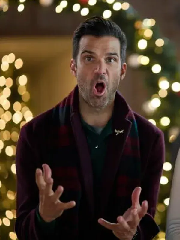 In A Christmas Angel Match, Benjamin Ayres plays Michael, and this coat reflects his gentle, hopeful spirit. Crafted in rich purple wool with a soft viscose lining, it features a lapel collar, button closure, and both inner and outer pockets for function and style while maintaining comfort.