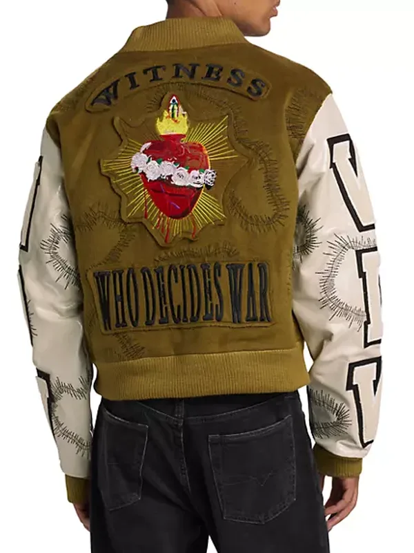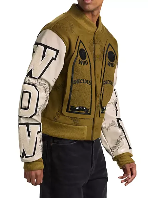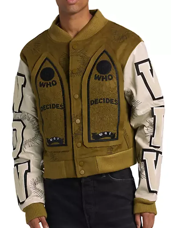 Who Decides War Olive Namesake Bomber Varsity Jacket