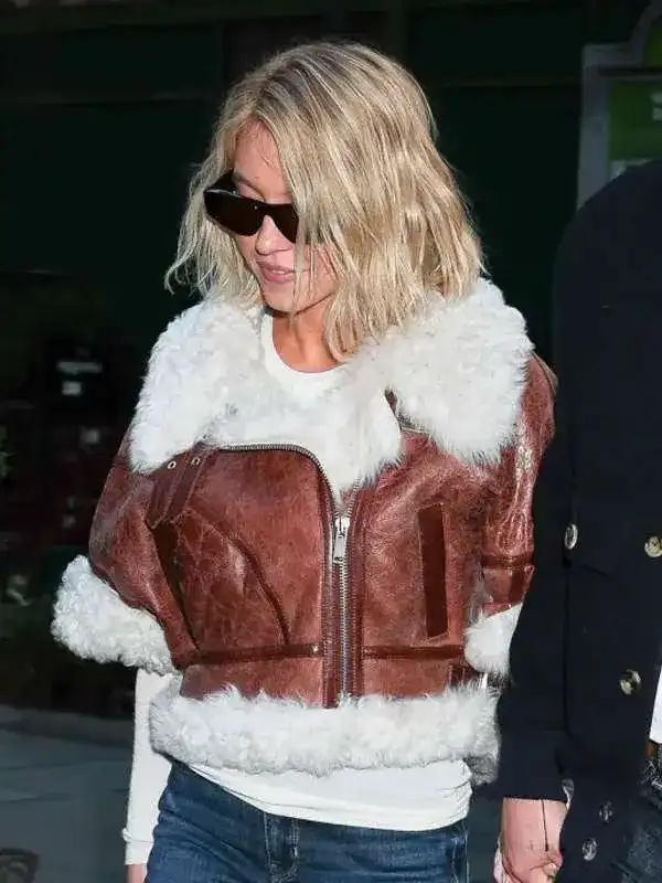 NYC Sydney Sweeney Leather Shearling Jacket