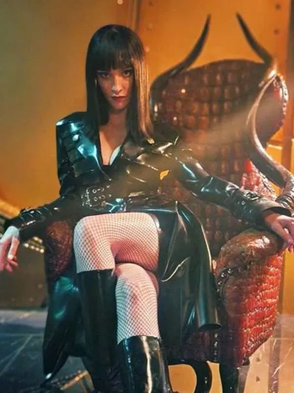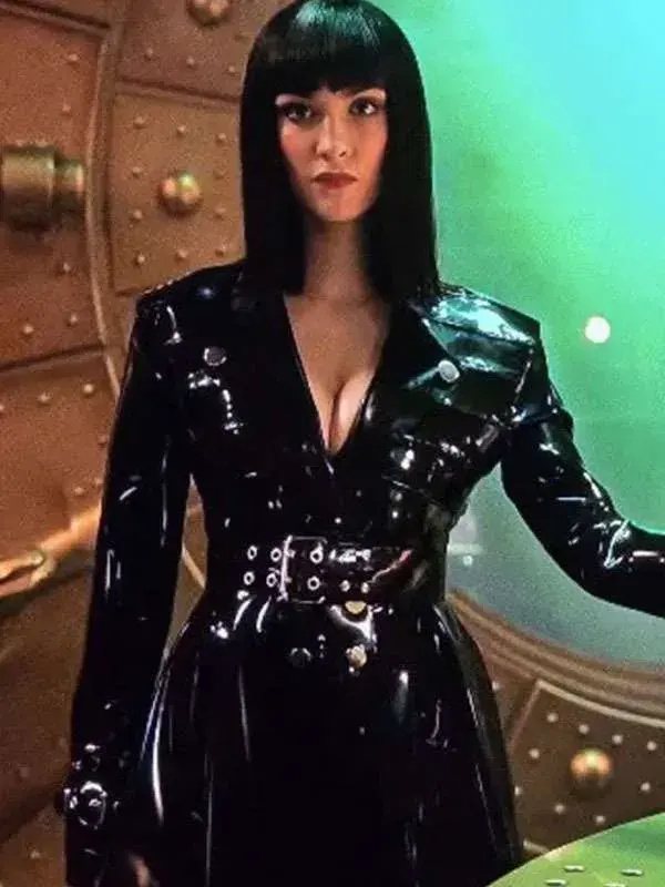 The Nico Robin Black Coat from the One Piece series is crafted using patent leather, soft viscose lining, full length sleeves, belted cuff, lapel style collar, and button and belted front, including two outside pockets and two inside pockets. It is ideal for bold styling and elegant fashion.