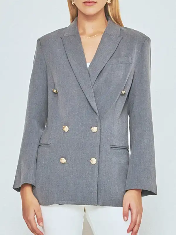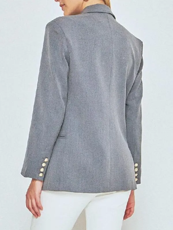 The Jess Taylor Grey Blazer from the Owning Manhattan series is crafted using durable wool fabric, soft inner viscose lining, a lapel style collar, button closure front, full length sleeves, open hem cuffs, three outside pockets, and one inside pocket. It suits corporate attire, office hours, and looks.