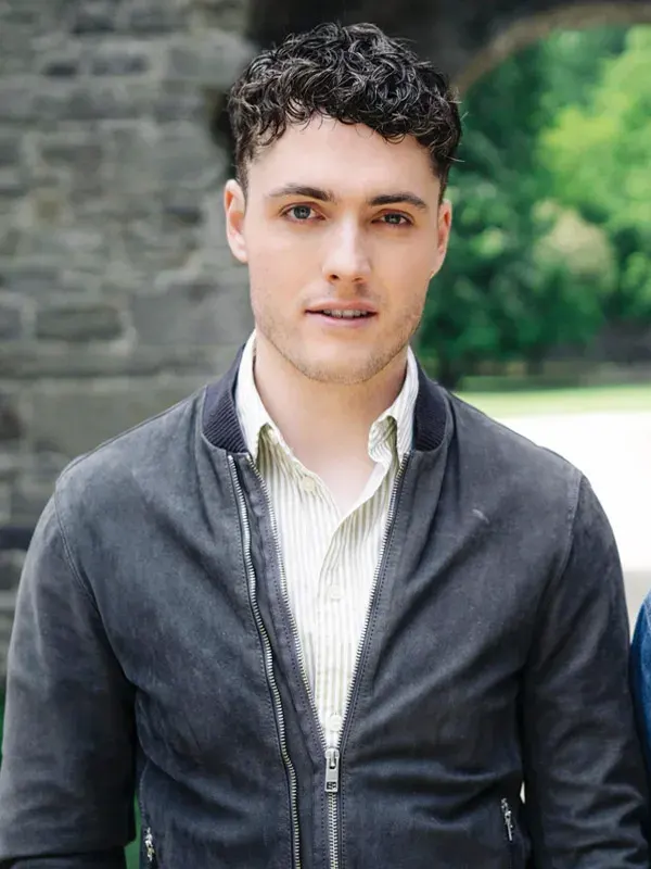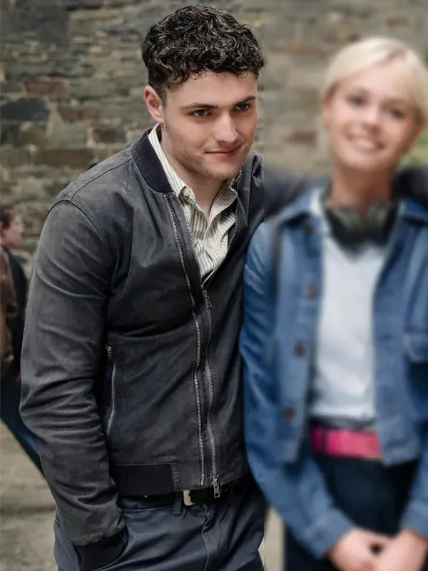 Worn by Tom Lewis in the Patience series, this grey bomber jacket is built using cotton fabric, soft viscose lining, full length sleeves, ribbed cuffs, rib knit collar, and zipper closure, including two outside pockets and two inside pockets. It suits everyday wear, casual plans, weekend outings, and easy modern street styling.