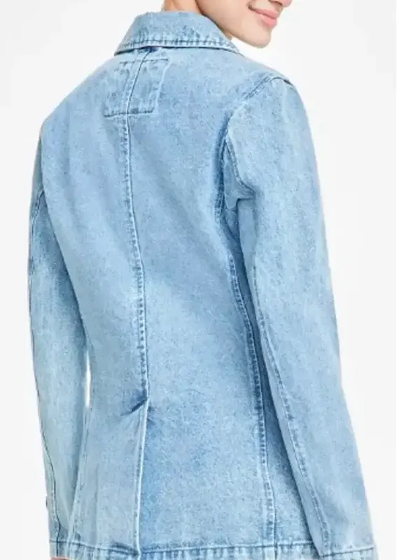 Zosia, played by Karolina Wydra, captivates audiences in the acclaimed sci-fi series Pluribus that blends drama and thought-provoking twists. This denim blazer with soft-washed fabric, relaxed fit, and classic patch pockets brings effortless cool to weekend city strolls and casual brunches while elevating every outfit with easy confidence.