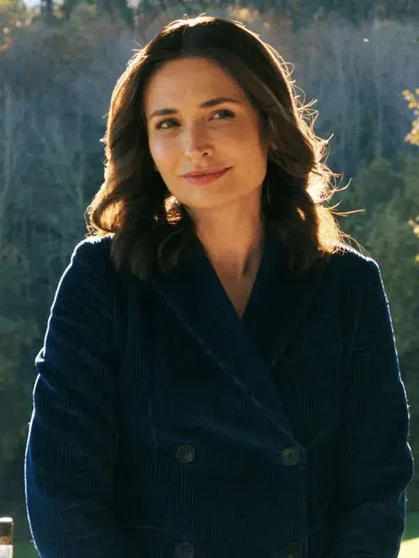 The Zosia Blue Corduroy Blazer from the TV series Pluribus features corduroy fabric, a soft viscose lining, full sleeves, a lapel collar, a button front, three outer pockets, and two inner pockets, offering textured charm suited for creative settings. friendly gatherings, calm routines, daytime plans, thoughtful expression, and relaxed everyday style.