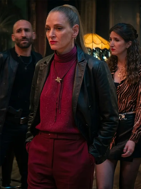 This Uma Thurman Black Leather Blazer from the Pretty Lethal movie is created using genuine leather, soft viscose lining, full length sleeves, lapel style collar, and button closure, including two outside pockets and two inside pockets. It is ideal for confident and refined styling.