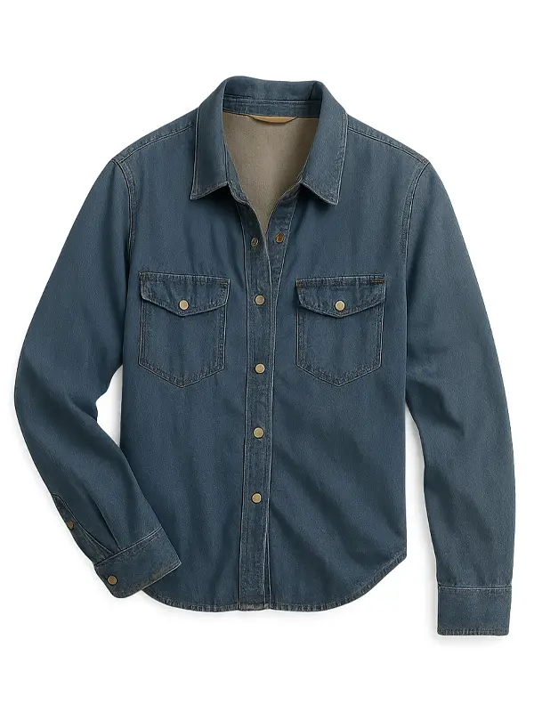 The denim jacket worn by Faith MacCaullay in the Ready or Not 2 movie is crafted using denim, soft viscose lining, full length sleeves, button closure, buttoned cuffs, a shirt style collar, two outside pockets, two inside pockets, and blue color and is great for suspense scenes, casual layering, and everyday cinematic fashion inspiration today.
