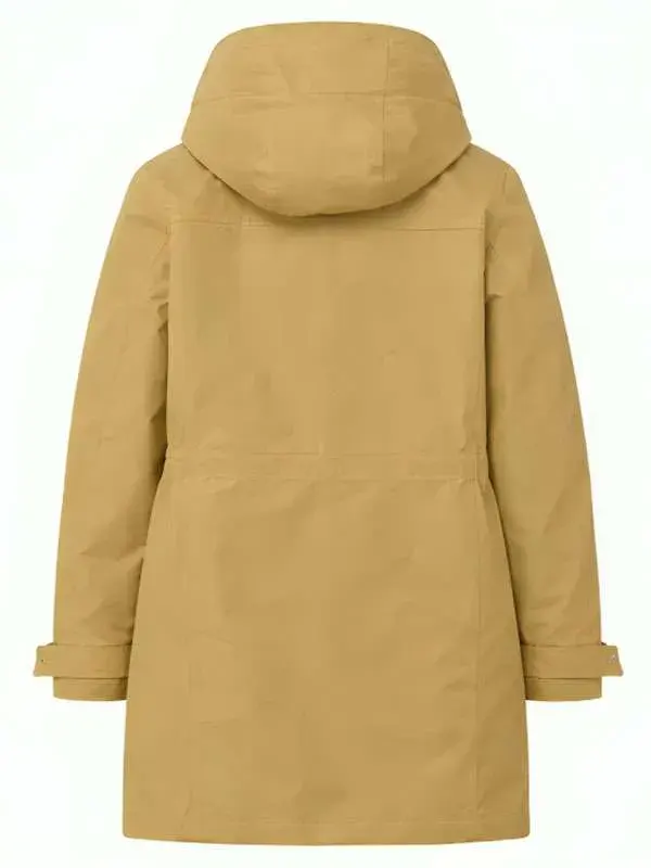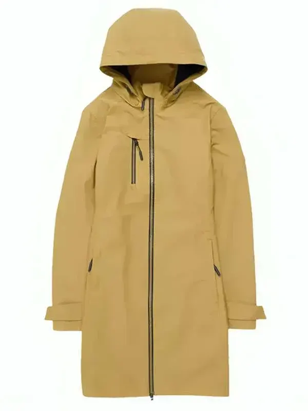 Styled by Ruth Jones in the Run Away series, this yellow hooded coat features premium cotton polyester, smooth viscose lining, full length sleeves, belted cuffs, hooded style collar, and zipper closure with three outside pockets and one inside pocket. It is ideal for daily wear, casual plans, outings, and layered seasonal style.