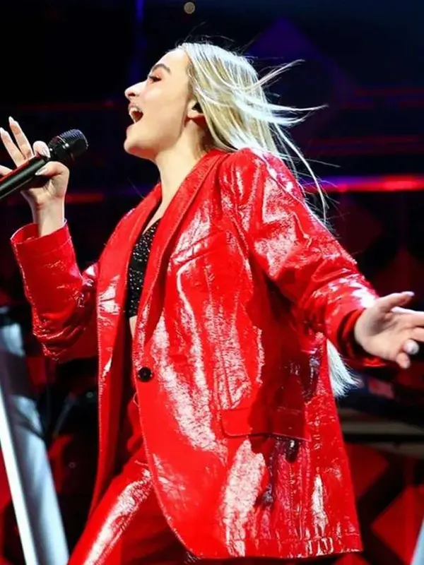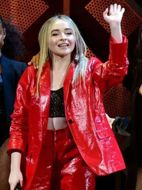 A power dressing essential with Sabrina’s signature flair, this red leather blazer features a genuine leather exterior, viscose inner, lapel collar, and button front with three exterior pockets. Its confident silhouette aligns effortlessly with the polished vibe of the Sabrina Carpenter Black Blazer.