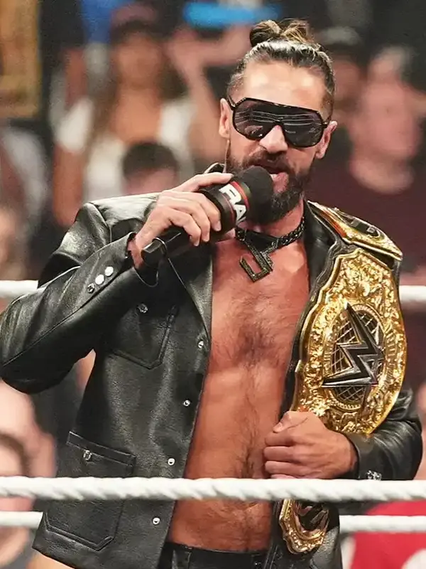 WWE Wrestler Monday Night RAW 2025 Seth Rollins Black Leather Jacket