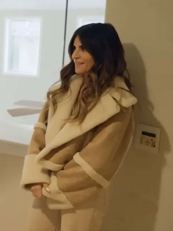 This jacket worn by Alison Victoria in the Sin City Rehab series offers genuine leather supported by warm shearling lining, full length sleeves, button closure shearling cuffs and collar with roomy pockets, making it ideal for cold evenings, winter gatherings, mountain trips, and cozy experiences in winter.