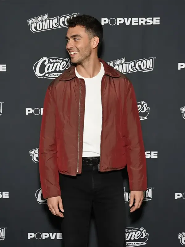 Worn by George Hawkins at the Star Trek Starfleet Academy comic con event, this red jacket features polyester fabric, soft viscose inner, full length sleeves, open hem cuffs, shirt style collar, and zipper closure, including two outside pockets and two inside pockets. It fits sci fi gatherings, casual days, and stylish fandom fashion looks.