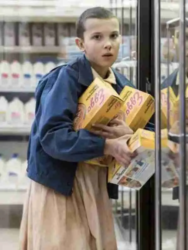 Eleven, played by Millie Bobby Brown, leads the mystery in this series. This blue cotton jacket features soft fabric and a simple, comfortable design. Embrace Stranger Things Season 01 style as Stranger Things Season 01 energy adds charm to outings and brings Stranger Things Season 01 appeal to everyday, fresh fashion.