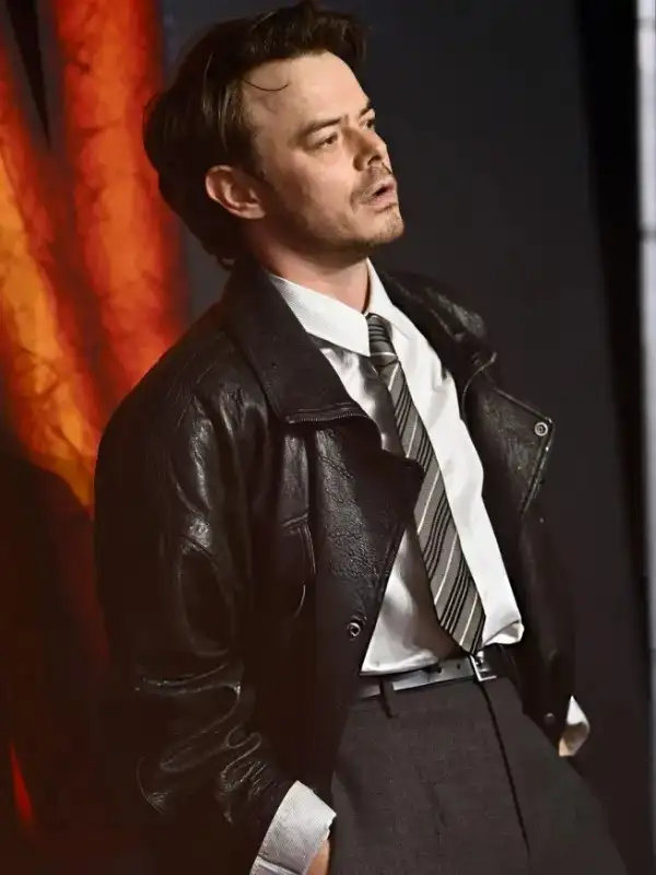 Styled by Charlie Heaton at the Stranger Things UK screening event, this jacket features genuine leather, soft viscose lining, full sleeves, a button and zipper closure, two outer pockets, and one inner pocket. It is perfect for casual outings, fashion events, and stylish celebrity inspired looks throughout the year.