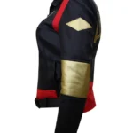 Are you a diehard fan of Suicide Squad? Luckily, we crafted a high-quality Suicide Squad Karen Fukhrana Leather Jacket for you. Designed from a flower Emblem material, it has a shirt-style collar. Moreover, it has a red patch shoulder with a YKK quick zipper style. Also, we added two asymmetric waistlines.