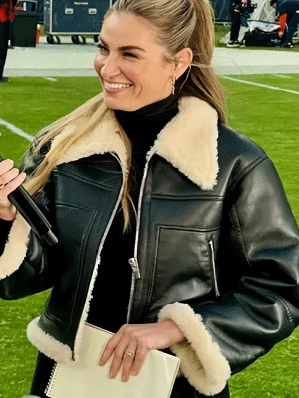 NFL Super Bowl Erin Andrews Shearling Black Leather Jacket