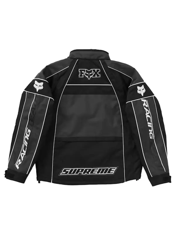 The Supreme Fox Racing Hooded Black Jacket is crafted using polyester fabric, supported by soft viscose lining, offering full length sleeves, velcro strap cuffs, a hooded collar, zipper closure, two outside pockets, and one inside pocket. The black and grey look suits daily wear, light riding, and relaxed outdoor plans.
