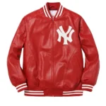 Are you a fan of the Yankees? Do not miss out on our Supreme New York Yankees Varsity Jacket. Designed this jacket mostly for the Yankees fans, it has a front zipper closure and comes in full-length sleeves. Moreover, the jacket comes with two side waist pockets and comes in red.