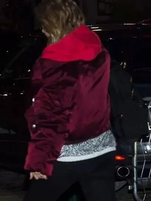 Famous Singer Taylor Swift Burgundy Oversized Bomber Hooded Jacket