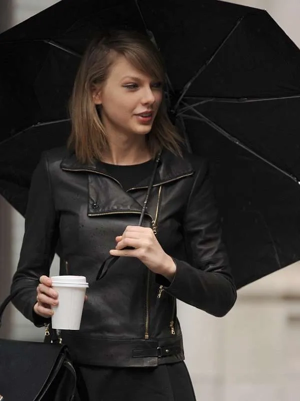 Taylor Swift is an iconic singer known for her versatile music and bold fashion choices. Rising to global fame through award-winning hits, she inspires fans everywhere. This black genuine leather motorcycle jacket offers durable material, a smooth finish, and a comfortable fit, making it perfect for concerts, casual outings, and confident everyday style.