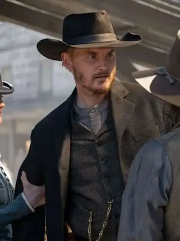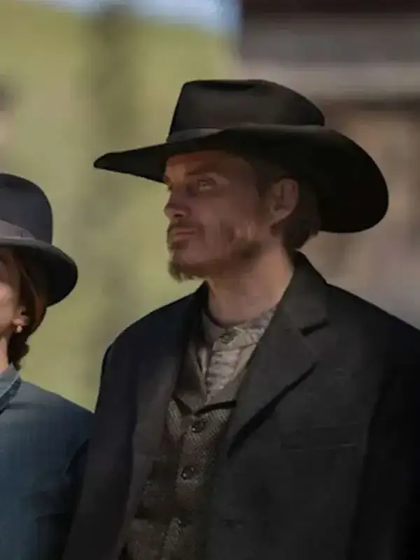 The black blazer is styled by Willem Van Ness in the series The Abandons, crafted from wool fabric with soft viscose lining, full sleeves, button closure, open hem cuffs, and useful pockets, making it suitable for meetings, social visits, refined gatherings, and moments where confident simplicity supports a polished presence.