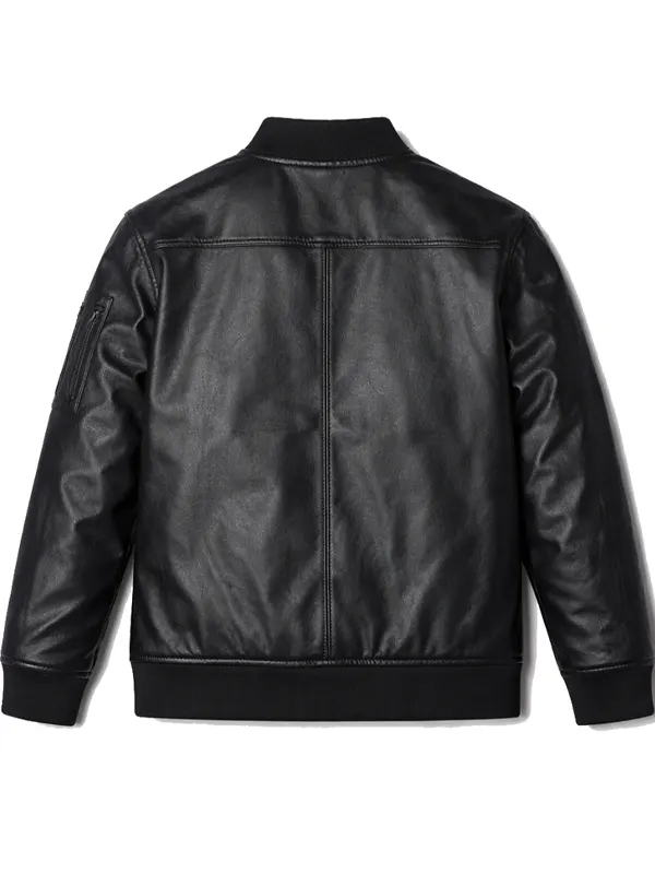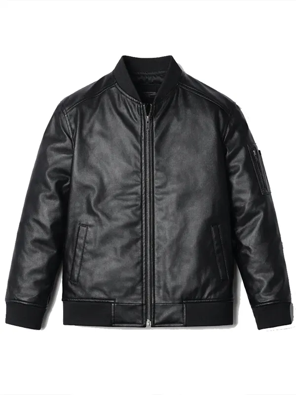 Upgrade your casual attire with this Anthony Ramos Black Leather Jacket from the set of The Beauty. Expertly crafted from genuine leather with a soft viscose lining, it offers a perfect blend of comfort and edge. The classic bomber silhouette, complete with a rib-knitted collar and cuffs, ensures a modern fit for any urban adventure or evening out.