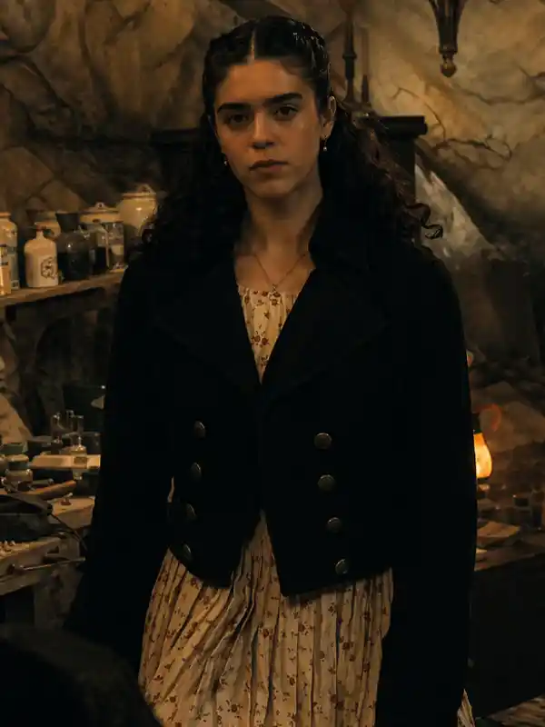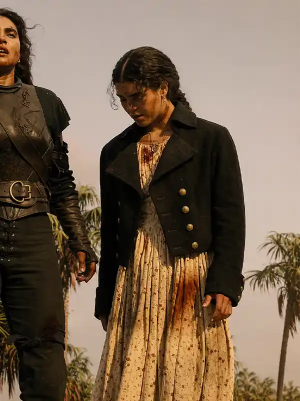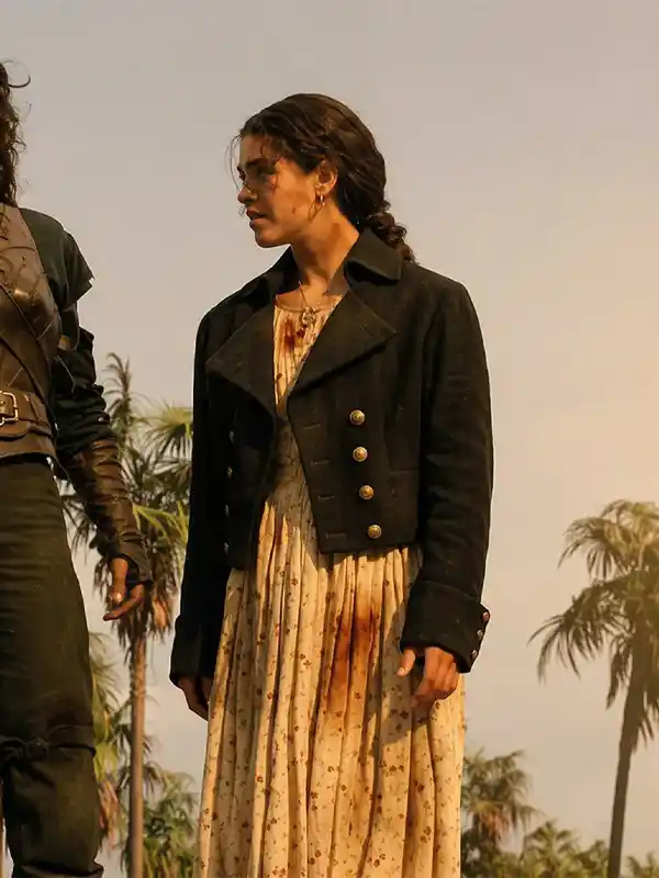 Safia Oakley Green Movie The Bluff  2026 Elizabeth Black Cropped Wool Blazer