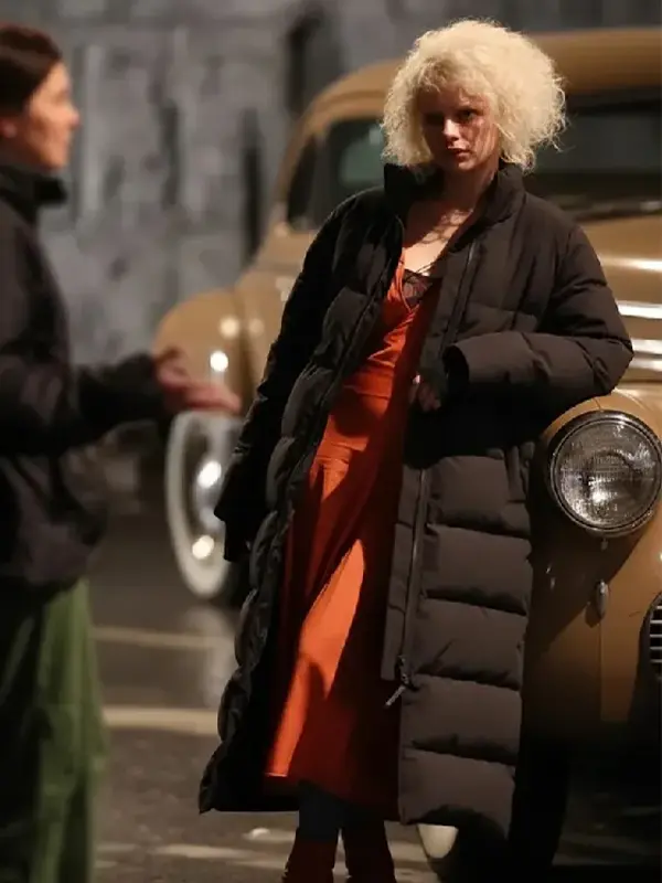 Jessie Buckley Movie The Bride The Bride Black Puffer Long Coat