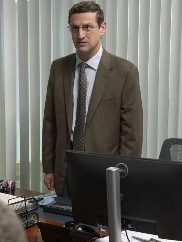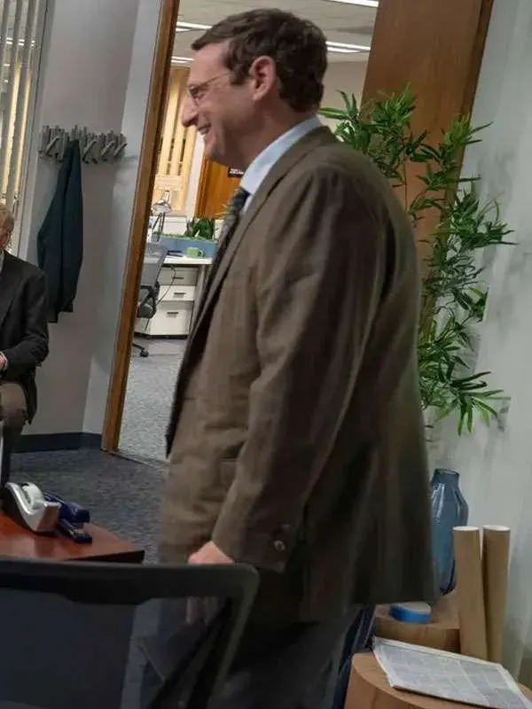 Tim Robinson is a bold comedian celebrated for unpredictable sketches and raw comedic genius. The Chair Company offers a satirical look at workplace absurdities and creative entrepreneurship. This rich brown blazer features breathable fabric and sharp tailoring to blend effortless comfort with his signature offbeat style.