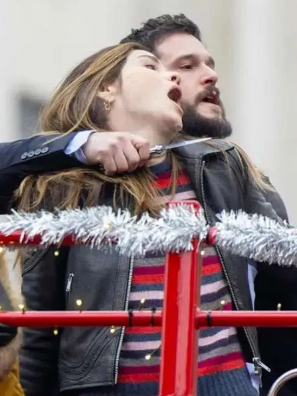 Styled by Jessica Morgan in The Family Plan 2, this jacket is crafted using genuine leather, soft viscose lining, full length sleeves, a shirt style collar, a zipper closure, two outside pockets, and one inside pocket in black. It is great for nights out or formal casual events.