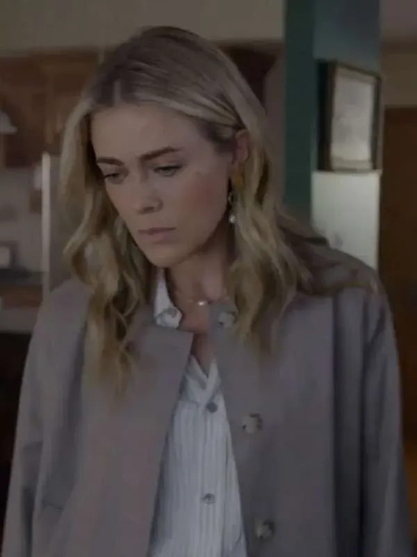 Rebecca Henderson Beige Jacket from The Hunting Party series is built using suiting fabric, soft viscose lining, full length sleeves, buttoned cuffs, collarless design, and button closure, completed with two outside and two inside pockets in beige color. It is great for office wear, meetings, and polished looks.