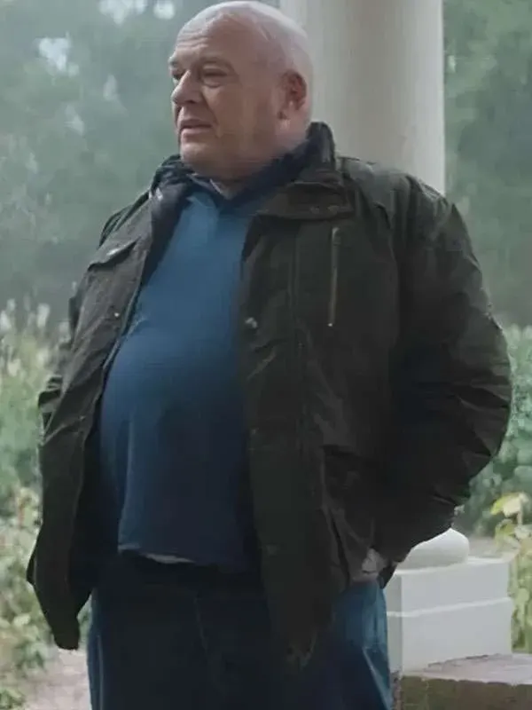 Dean Norris portrays Cliff in The Parenting, a horror-comedy that explores family chaos when an ancient evil invades a holiday getaway. This jacket is crafted from breathable cotton with a soft viscose lining, featuring a stand-up collar, four outer pockets, and secure zip and button closure. Ideal for a rugged but refined casual look.
