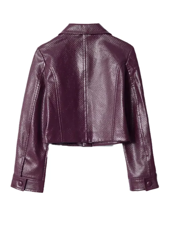 Stand out this season with the Zephani Idoko Purple Jacket, inspired by her vibrant style in “Twelve Dates ‘Til Christmas.” Crafted from high-quality textured faux leather, this jacket features a unique embossed pattern and a modern cropped silhouette. With its structured collar and hidden front closure, it offers a high-fashion edge that is perfect for any festive occasion.