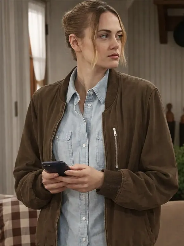 Claire Grace TV Series The Young and the Restless Hayley Erin Suede Brown Bomber Jacket