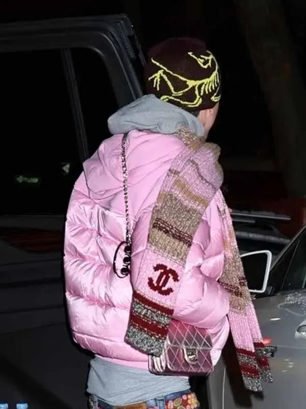Inspired by Timothee Chalamet style, this pink puffer jacket is tailored using fleece and parachute fabric, soft viscose lining, full length sleeves, ribbed cuffs, hooded collar with strings, and zipper closure, including two outside pockets and two inside pockets. It is ideal for standout fashion and winter wear.