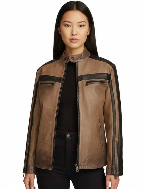 This jacket stands out with its bold two-tone café racer design. Made from premium leather, it features contrasting panels, a clean zip-front closure, smooth inner lining, and refined stitching. It is perfect for casual wear, street styling, and individuals wanting a fashionable, sporty leather jacket with visual impact.