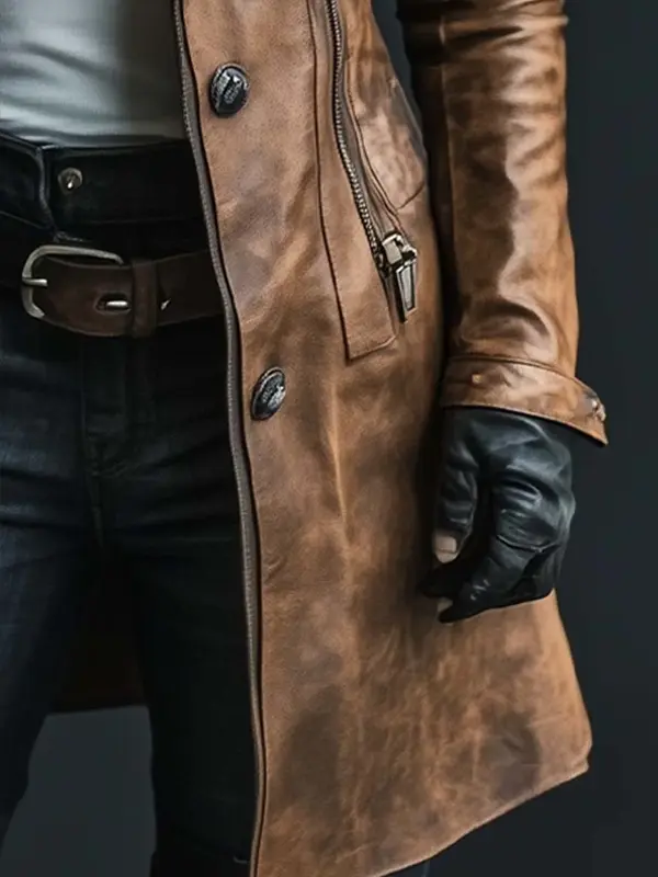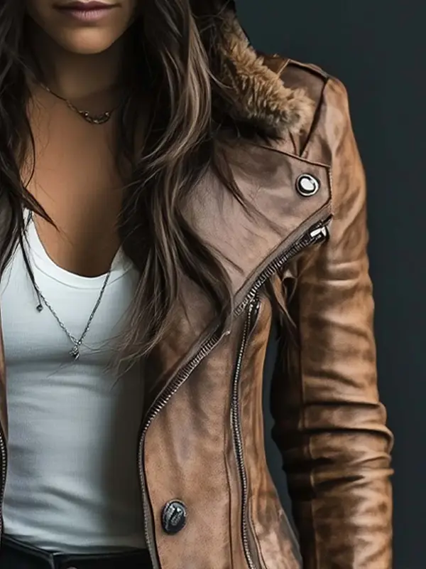 This coat blends vintage elegance with cozy warmth using quality leather and a soft fur-style collar. Its refined design adds sophistication to winter outfits and brings classic flair. Perfect for chilly weather, evening dinners or stylish seasonal wear with a vintage twist.