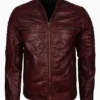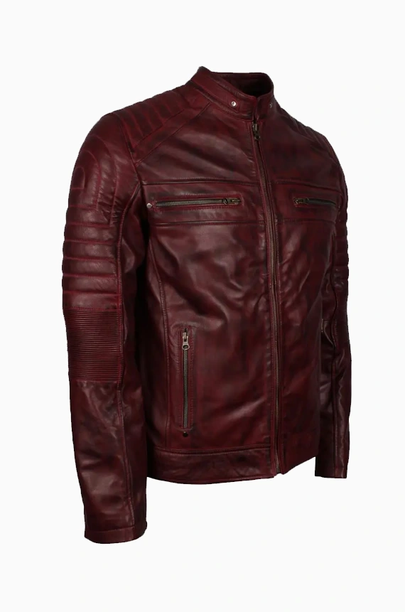 Vintage Maroon Waxed Leather Cafe Racer Jacket