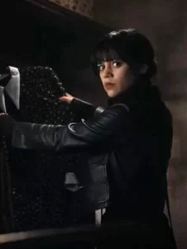 Capture Wednesday’s dark style with this sharp black jacket made from Genuine Leather. It features a classic shirt-style collar and a Buttoned Closure. Practicality meets edge with four outside pockets, making this a durable and iconic piece for any fan.