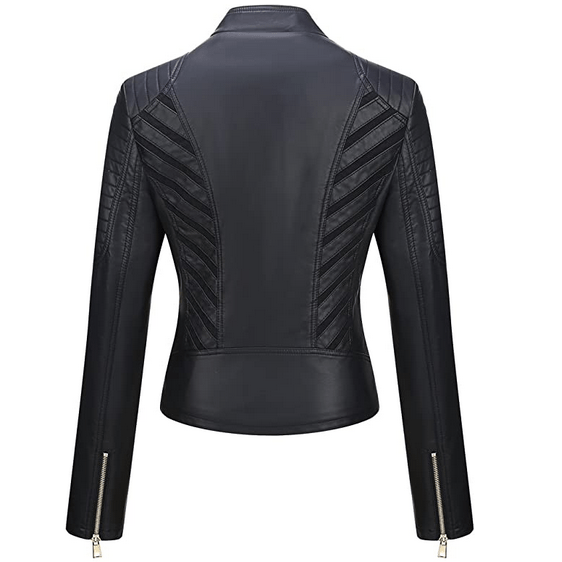 Women Biker Zip Closure Leather Jacket