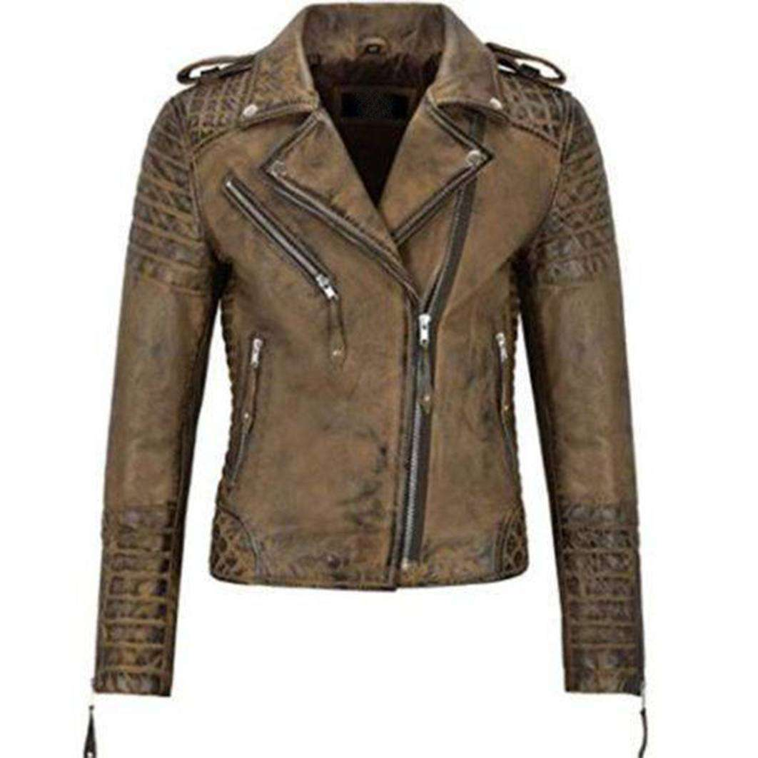 Women Distressed Brando Leather Jacket