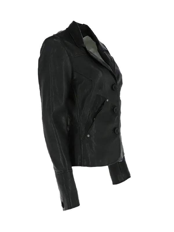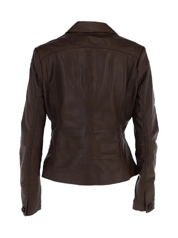 This Women’s Alameda Leather Jacket is crafted using genuine leather with soft viscose lining, featuring full length sleeves, button front closure, buttoned cuffs, lapel style collar, two outside pockets, two inside pockets, offering a refined look suitable for office wear, smart casual meetings, weekend outings, and everyday city fashion, elegance.