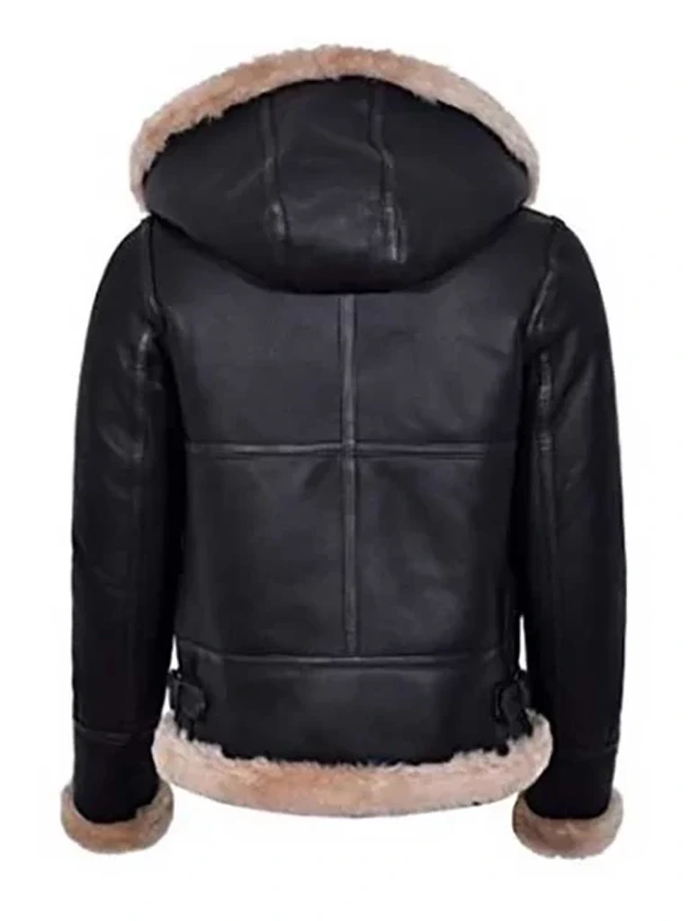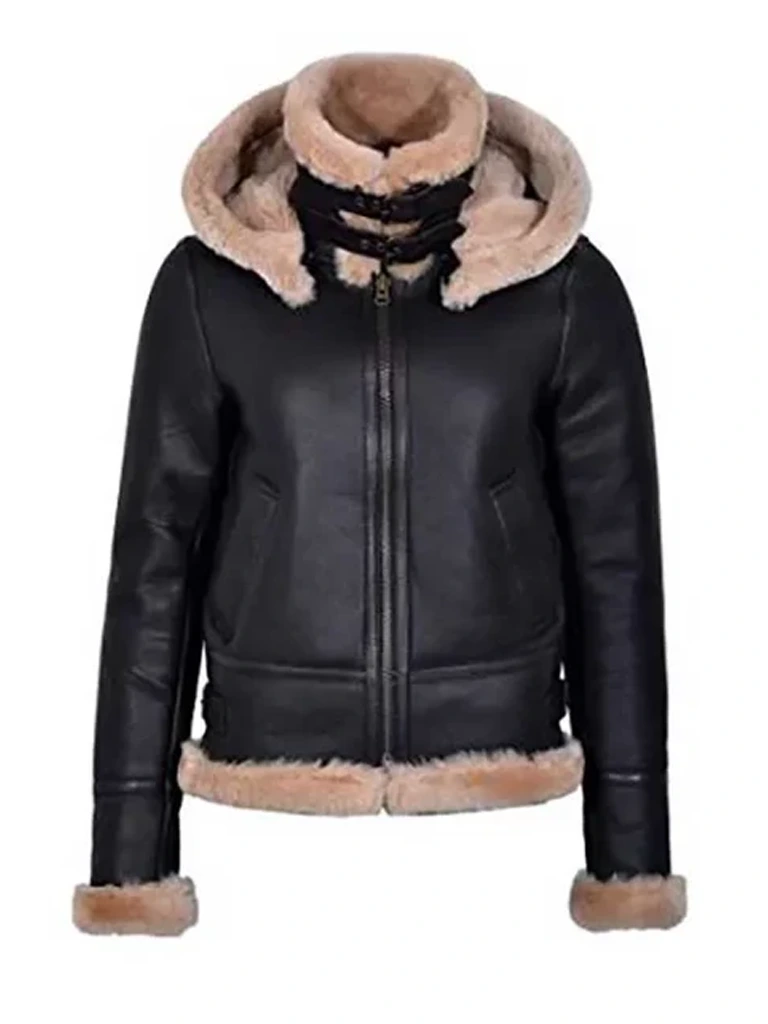 Lift up your look with our Women’s Aviator Fur Hooded Leather Jacket. Designed from genuine leather, it has a fur lining. Moreover, it has the long-sleeves feature and a fur collar adorned with a hoodie style. Also, we added 2 side pockets with zips in this jacket.